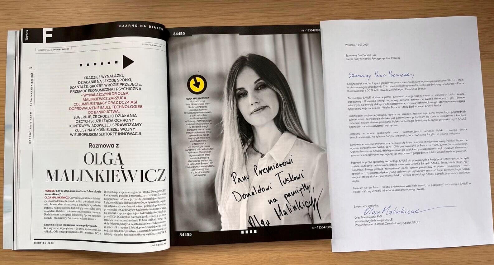 Działając w interesie publicznym przedrukowujemy apel Olgi Malinkiewicz do premiera Donalda Tuska o pomoc w sprawie zatrzymania w Polsce innowacyjnej technologii, o strategicznym znaczeniu dla państwa polskiego.