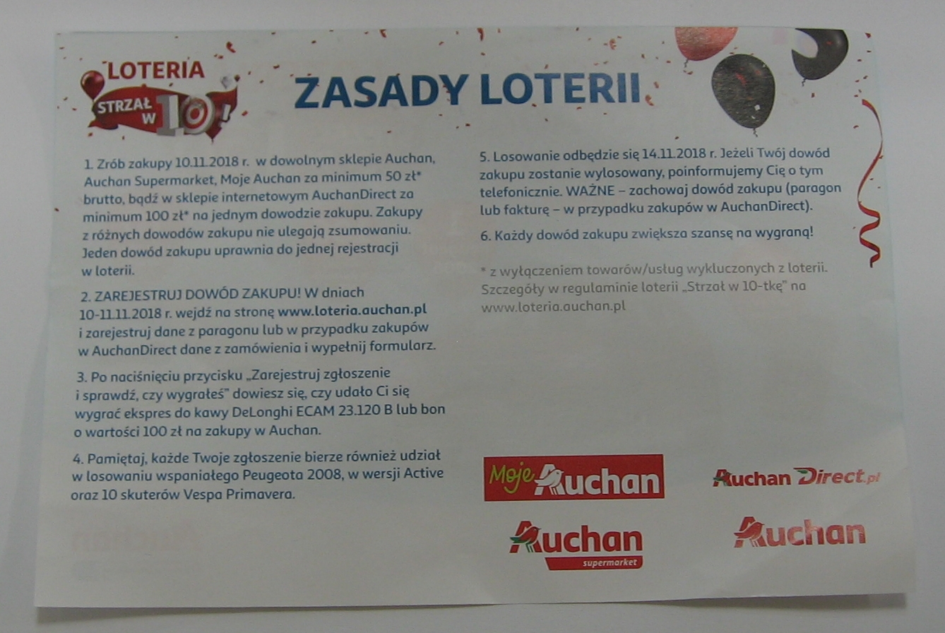 Auchan zachęca do zakupów w ich sieci i wzięcia udziału.... w loterii z nagrodą główną... samochodem.