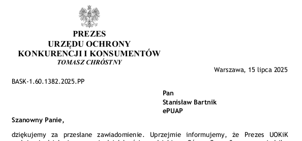 W trybie dostępu do informacji publicznej poprosiliśmy Urząd Ochrony Konkurencji i Konsumentów o odpowiedź: