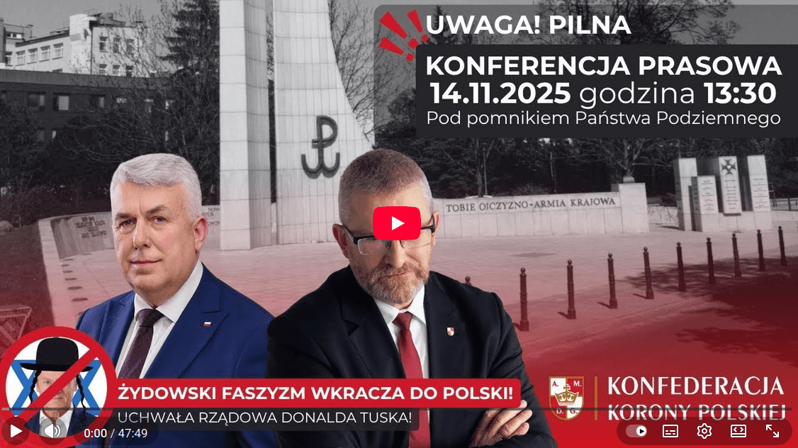 Działając w interesie publicznym przedrukowujemy stanowisko partii Grzegorza Brauna zatytułowane "Żydowski faszyzm wkracza do Polski".
