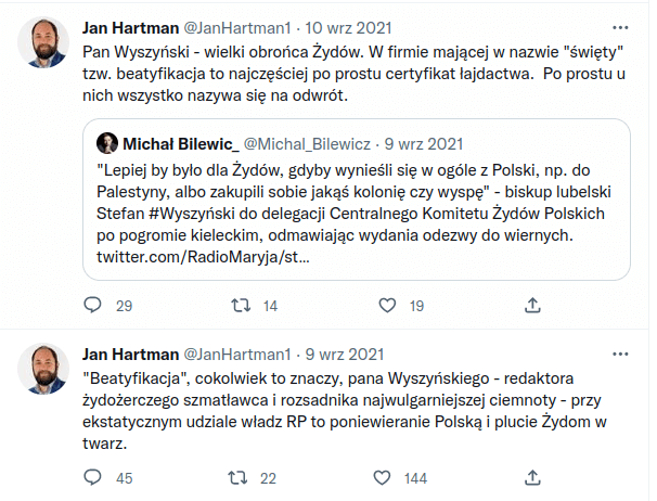 Źródło: Twitter, Jan Hartman - zrzuty ekranu