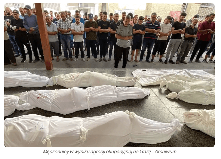 Od 7 października 2023 r. izraelskie siły okupacyjne dokonały zbrodni ludobójstwa w Strefie Gazy, zabijając ponad 67.869, raniąc ponad 170 tys. innych, w większości dzieci i kobiety. Głód pochłonął życie 463 Palestyńczyków, w tym 157 dzieci.