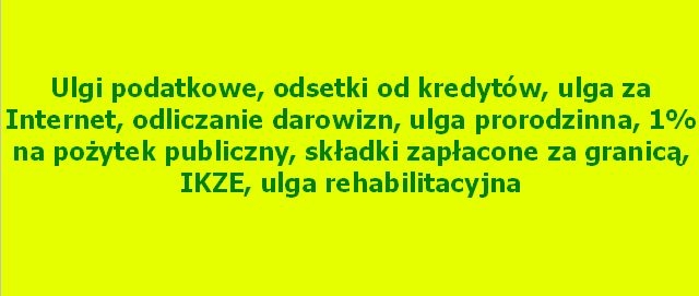 Ulgi należne podatnikom są od zawsze tematem wywołującym ogromne zainteresowanie, jednak ze względu na niedoinformowanie, często nie są w pełni wykorzystywane. Niestabilność rozwiązań prawnych dotyczących ulg podatkowych jest przyczyną powstawania ciągle nowych wątpliwości i braku pełnej, wyczerpującej i precyzyjnej informacji o możliwości ich stosowania. Większość podatników nie ma możliwości właściwego uwzględnienia przysługującym im ulg, często podatnicy nie wiedzą o ich istnieniu, nie znają rozwiązań szczegółowych lub dowiadują się o nich za pośrednictwem środków masowego przekazu w okresie poprzedzającym składanie rocznych zeznań podatkowych, a więc już po zakończeniu roku podatkowego, w którym to można było z konkretnej ulgi skorzystać. W sytuacji gdy po raz kolejny składana jest roczna deklaracja na podatek dochodowy od osób fizycznych wielu podatników zastanawia się, jak można zmniejszyć wysokość swoich zobowiązań z tego tytułu wobec państwa, względnie jak odzyskać przynajmniej część pieniędzy oddanych wcześniej tytułem zaliczek na podatek dochodowy. Kwestię tę można by inaczej ująć w pytanie – z jakich ulg i odliczeń można skorzystać?