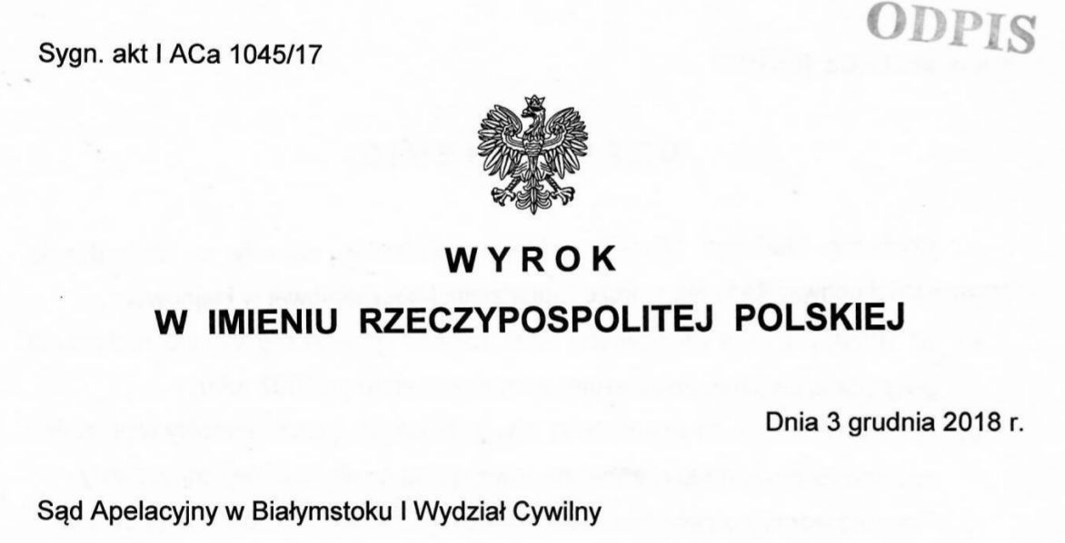 Działając w interesie publicznym publikujemy niezwykle ważny dla milionów członków spółdzielni wyrok Sądu Apelacyjnego w Białymstoku!